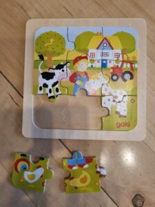 Einlegepuzzle Bauernhof von Goki, oder andere Motive wie Tiere im Dschungel